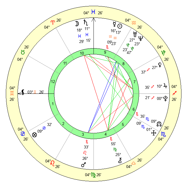 | Saturn | 11 Pisces 8 | 17 Pisces 32 | 14 Pisces 43 |