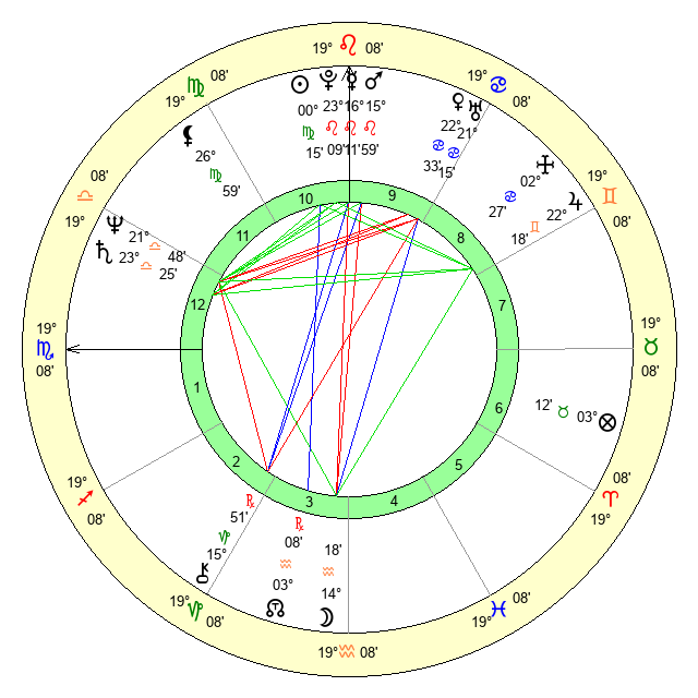 | Sun | 0 Virgo 15 | 0 Virgo 49 | 10 Scorpio 59 |