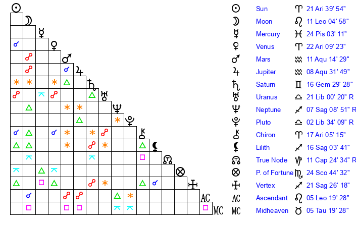 Sun | 21 Aries 39 | 22 Aries 3 | 12 Gemini 0 |