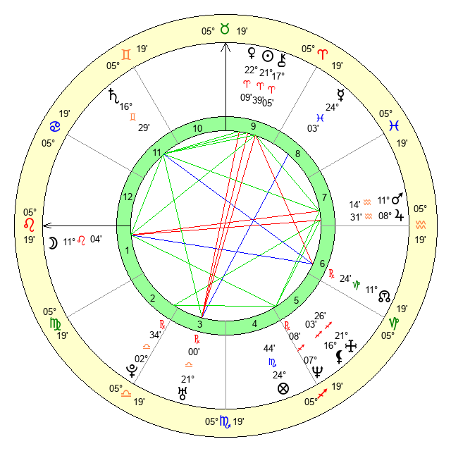 Moon | 11 Leo 9 | 7 Libra 43 | 3 Cancer 30 |