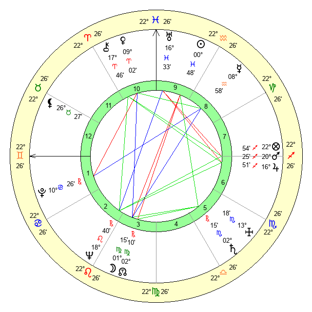 | Sun | 0 Pisces 48 | 2 Pisces 18 | 9 Gemini 56 |