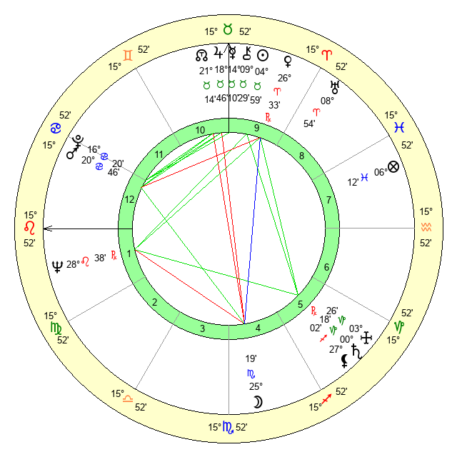 | Moon | 25 Scorpio 11 | 6 Aries 0 | 21 Taurus 52 |