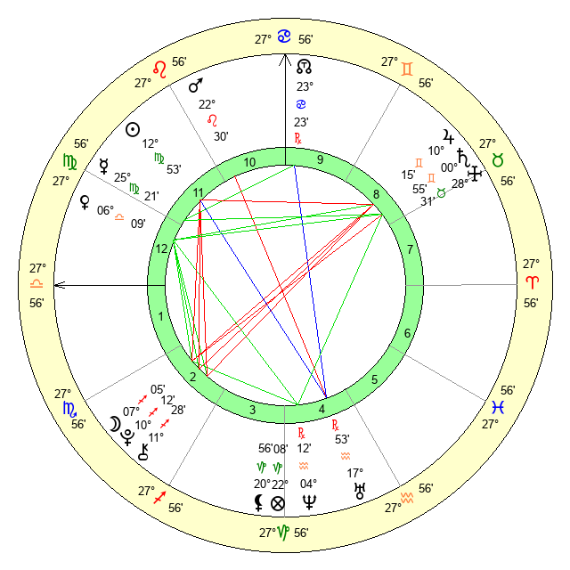 | Venus | 6 Libra 10 | 12 Leo 34 | 6 Scorpio 45 |