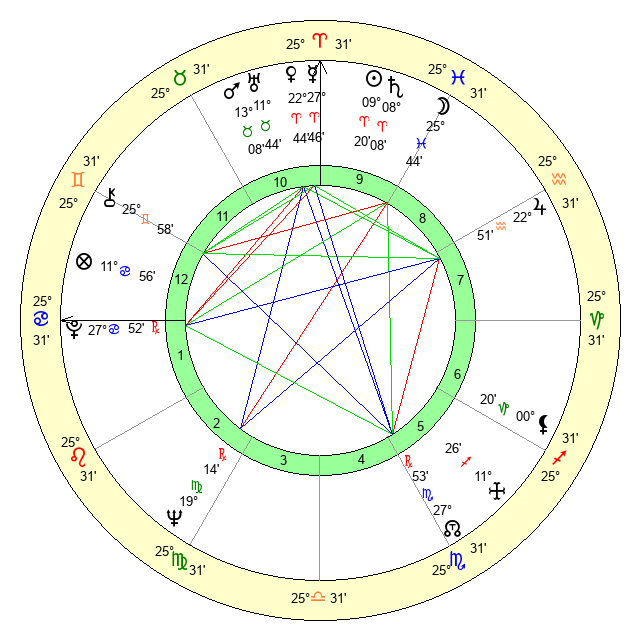 | Sun | 9 Aries 20 | 10 Aries 14 | 3 Cancer 27 |