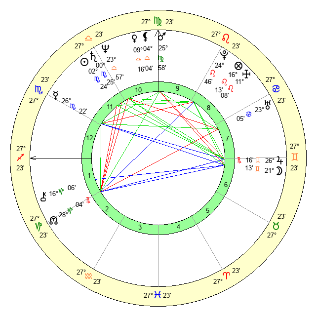 | Mars | 25 Virgo 58 | 23 Scorpio 18 | 9 Scorpio 58 |