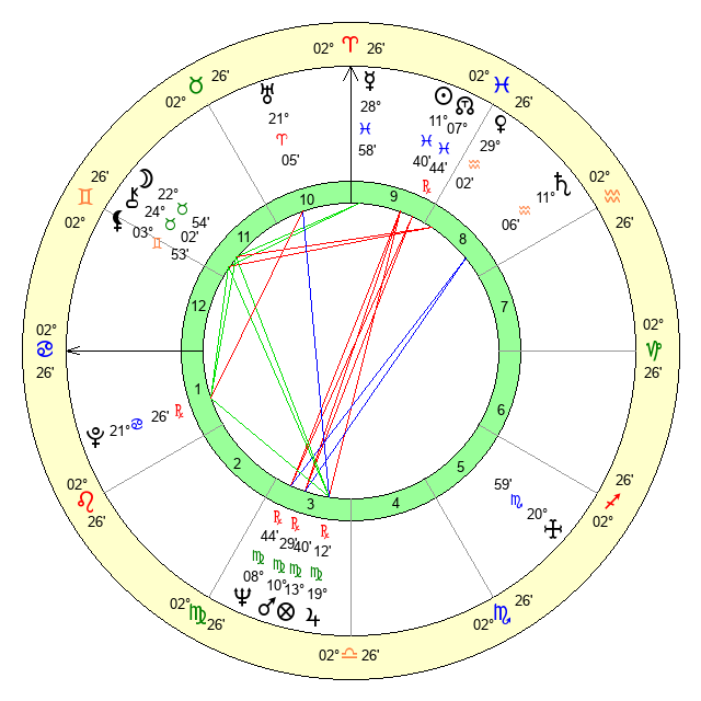 | Mars | 10 Virgo 28 | 17 Cancer 17 | 13 Virgo 25 |