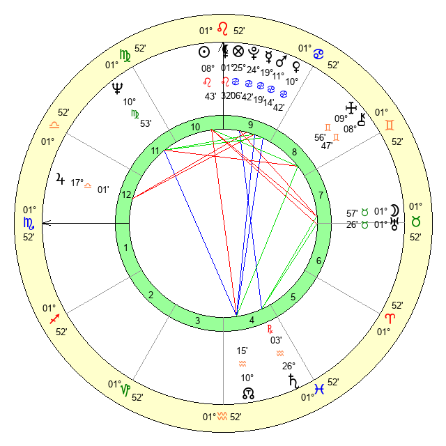 | Sun | 8 Leo 44 | 9 Leo 42 | 7 Scorpio 35 |