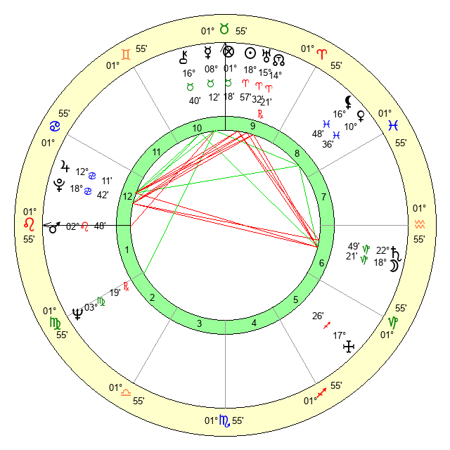 | Neptune | 5 Virgo 38 | 27 Pisces 18 | 3 Virgo 23 |