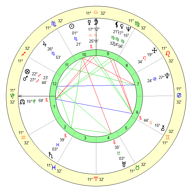 | Neptune | 15 Virgo 56 | 29 Pisces 54 | 16 Virgo 26 |