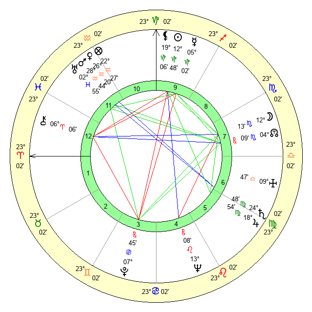 | Jupiter | 18 Virgo 39 | 12 Gemini 55 | 9 Virgo 9 |