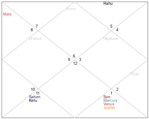 | Ketu | 6 Pisces 48 | 25 Virgo 50 | 0 Pisces 27 |