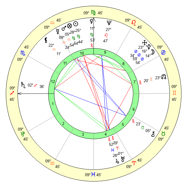 | Venus | 11 Virgo 53 | 0 Virgo 13 | 20 Scorpio 17 |