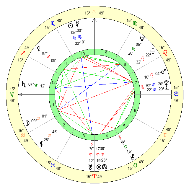 | Neptune | 5 Virgo 21 | 29 Pisces 49 | 5 Virgo 1 |