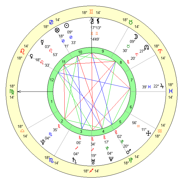 | Neptune | 4 Capricorn 16 | 2 Aries 10 | 3 Capricorn 21 |