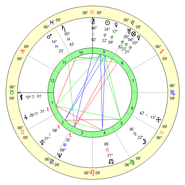 | Moon | 22 Virgo 33 | 13 Leo 32 | 11 Aquarius 59 |