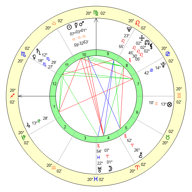 | Saturn | 12 Scorpio 59 | 27 Pisces 35 | 24 Scorpio 3 |