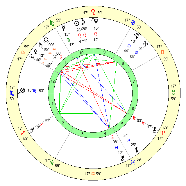 | Moon | 26 Leo 35 | 23 Leo 4 | 1 Gemini 50 |