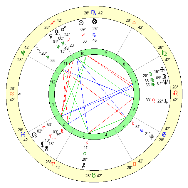| Neptune | 5 Virgo 38 | 27 Pisces 18 | 3 Virgo 23 |