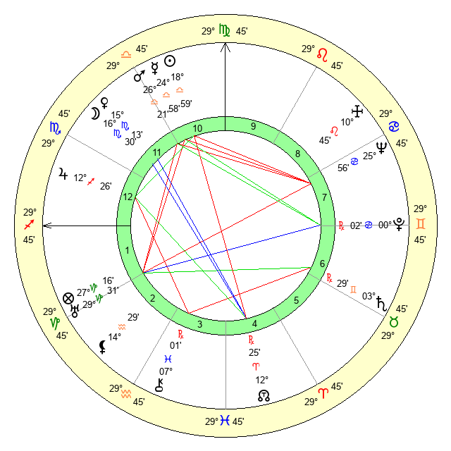 | Moon | 16 Scorpio 32 | 5 Cancer 58 | 4 Capricorn 30 |