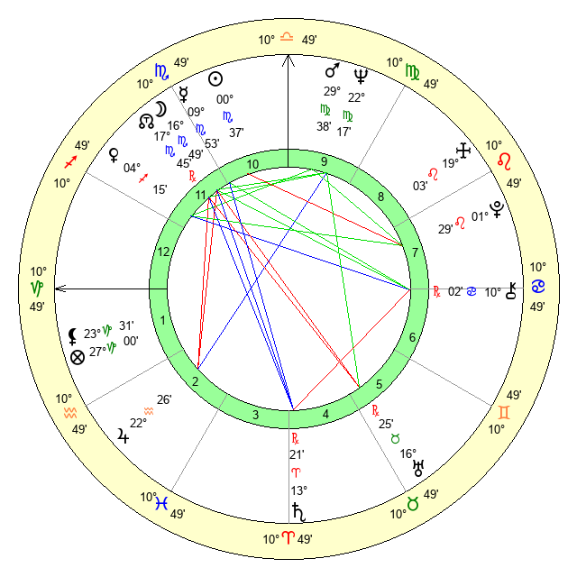| Mars | 29 Virgo 39 | 22 Scorpio 18 | 24 Scorpio 3 |