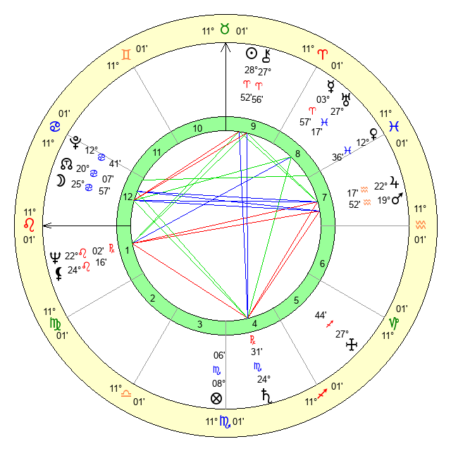 | Sun | 28 Aries 52 | 29 Aries 53 | 3 Leo 53 |