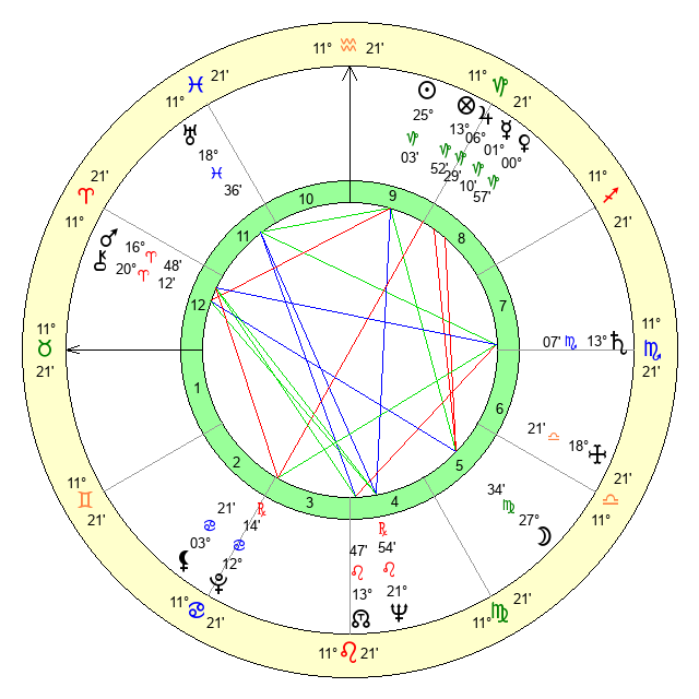 | Moon | 27 Virgo 32 | 17 Leo 19 | 5 Gemini 20 |