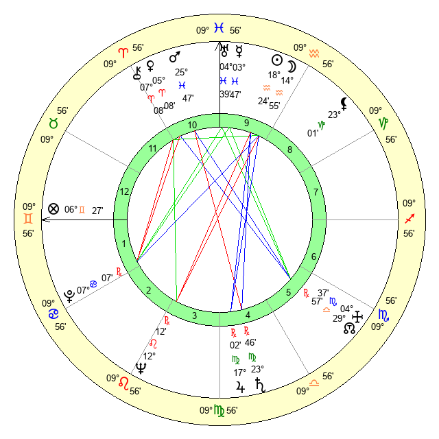 | Jupiter | 16 Virgo 45 | 11 Gemini 17 | 9 Virgo 5 |