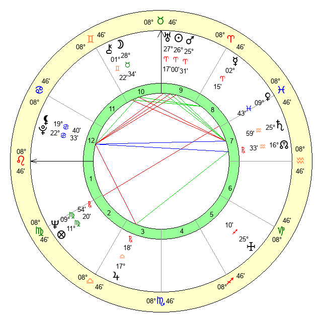 | Sun | 26 Aries 0 | 26 Aries 57 | 23 Cancer 27 |
