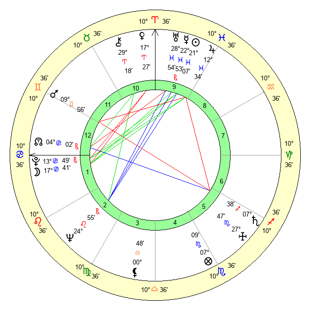 | Moon | 17 Cancer 42 | 4 Virgo 33 | 7 Aquarius 56 |