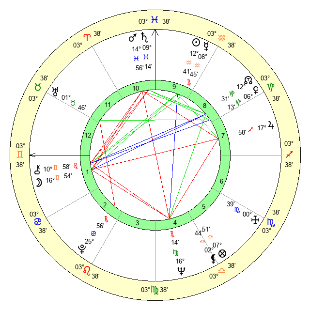 | Moon | 16 Gemini 56 | 9 Aries 21 | 17 Virgo 14 |