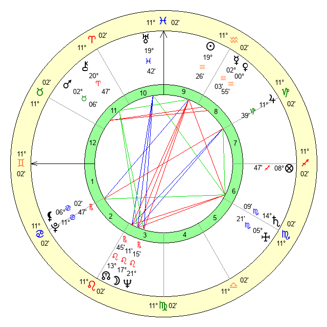 | Saturn | 14 Scorpio 42 | 18 Pisces 13 | 10 Scorpio 18 |