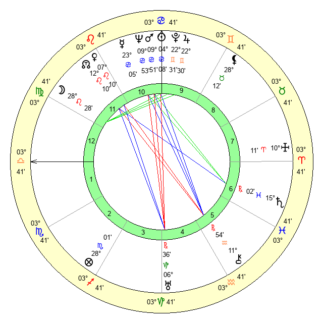 | Moon | 28 Leo 32 | 22 Cancer 20 | 18 Capricorn 6 |