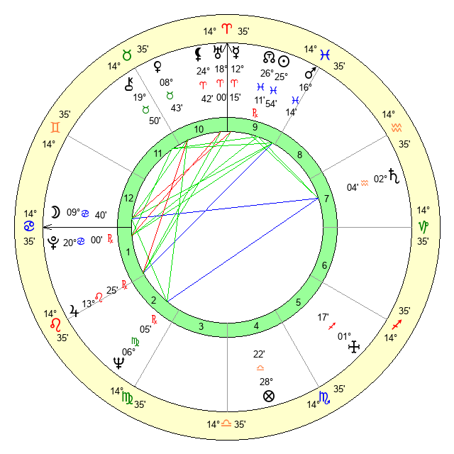 | Moon | 9 Cancer 34 | 22 Libra 44 | 15 Sagittarius 2 |