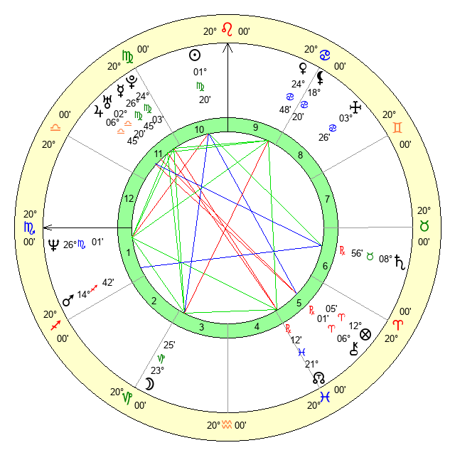 | Sun | 1 Virgo 20 | 1 Virgo 47 | 26 Libra 8 |