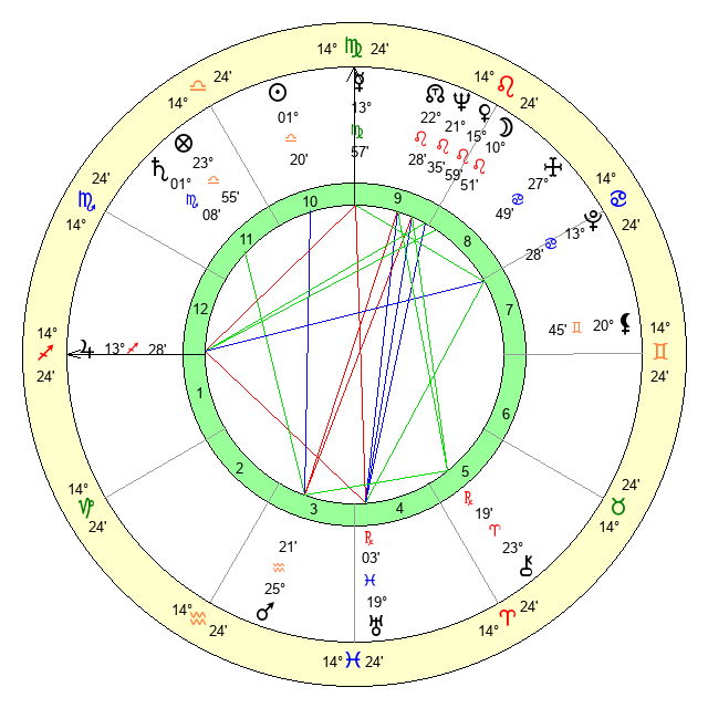 | Mercury | 13 Virgo 57 | 10 Libra 54 | 27 Sagittarius 36 |