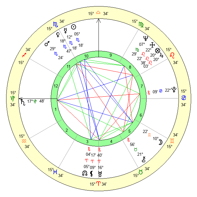 | Moon | 10 Gemini 25 | 6 Aquarius 51 | 27 Scorpio 37 |