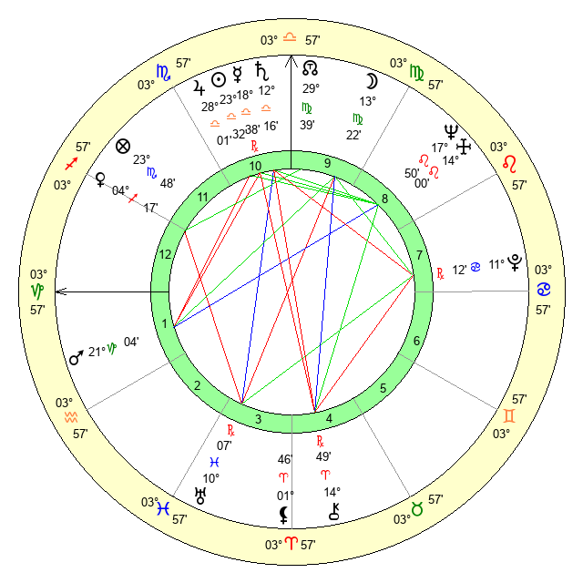 | Moon | 13 Virgo 25 | 11 Virgo 53 | 17 Gemini 45 |