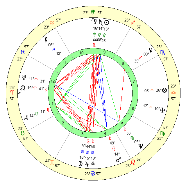| Neptune | 5 Virgo 35 | 27 Pisces 21 | 3 Virgo 20 |