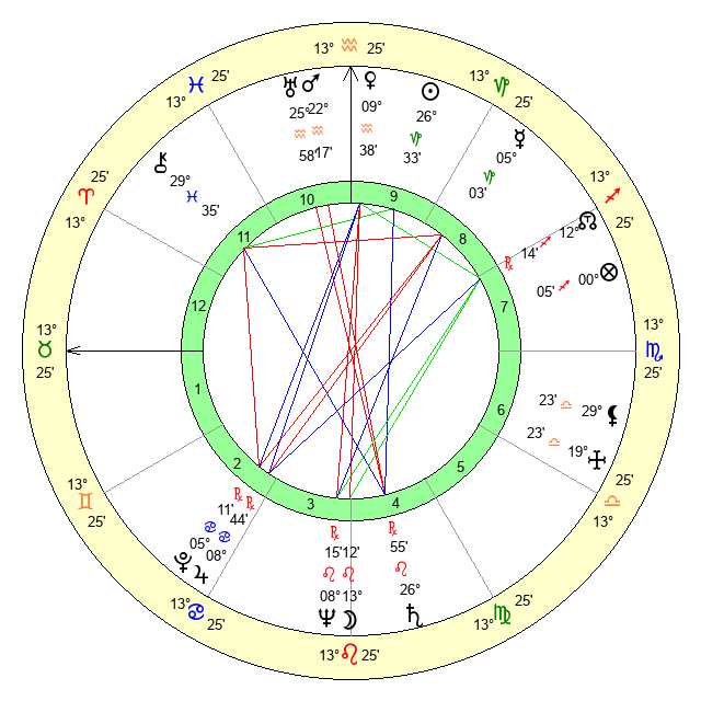| Mars | 22 Aquarius 17 | 25 Cancer 34 | 13 Taurus 39 |