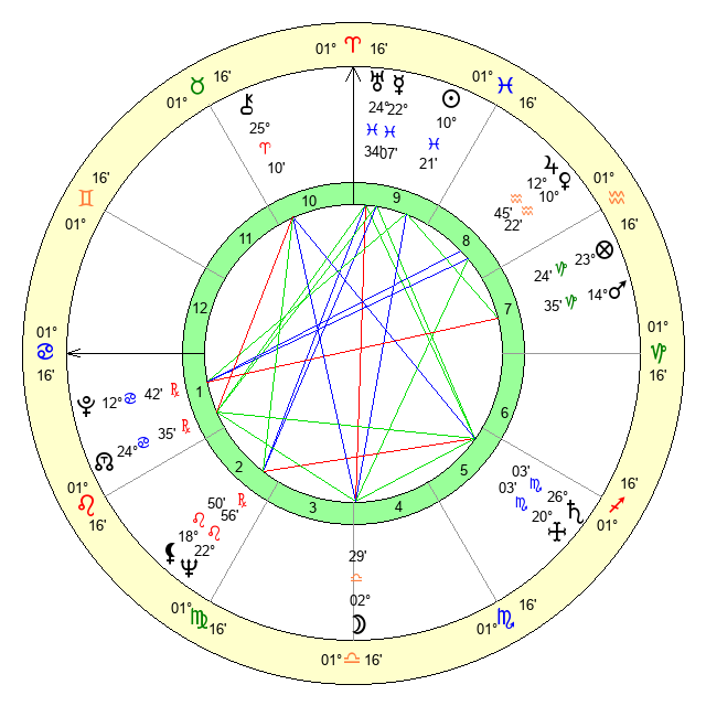 | Sun | 10 Pisces 22 | 11 Pisces 22 | 17 Gemini 7 |