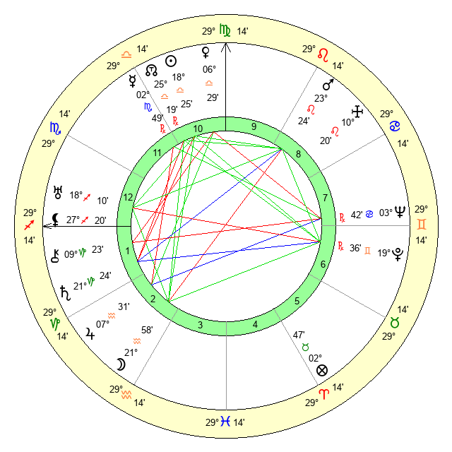 | Venus | 6 Libra 29 | 28 Virgo 32 | 10 Pisces 50 |