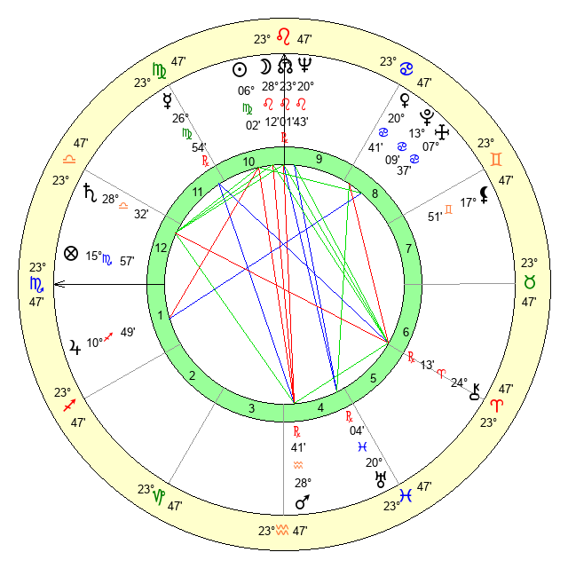 | Sun | 6 Virgo 3 | 6 Virgo 36 | 16 Sagittarius 22 |
