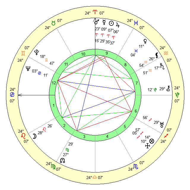 | Mars | 23 Aries 15 | 22 Cancer 34 | 18 Cancer 0 |