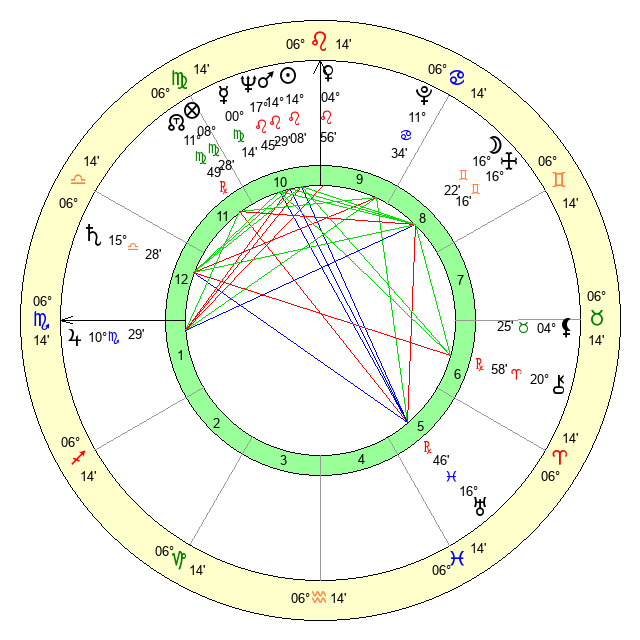 | Mercury | 0 Virgo 15 | 4 Leo 56 | 25 Scorpio 19 |