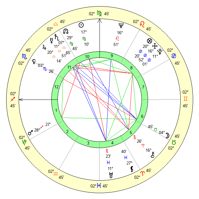 | Sun | 17 Virgo 11 | 18 Virgo 14 | 0 Capricorn 5 |