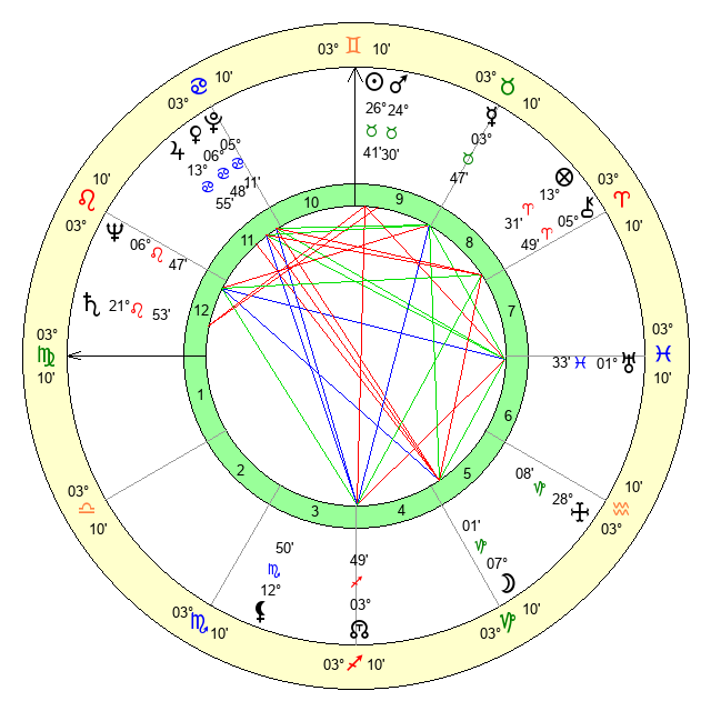 | Saturn | 22 Leo 36 | 29 Pisces 23 | 3 Virgo 11 |