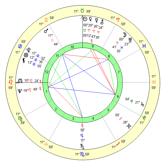 | Venus | 29 Aries 13 | 25 Pisces 45 | 1 Virgo 48 |