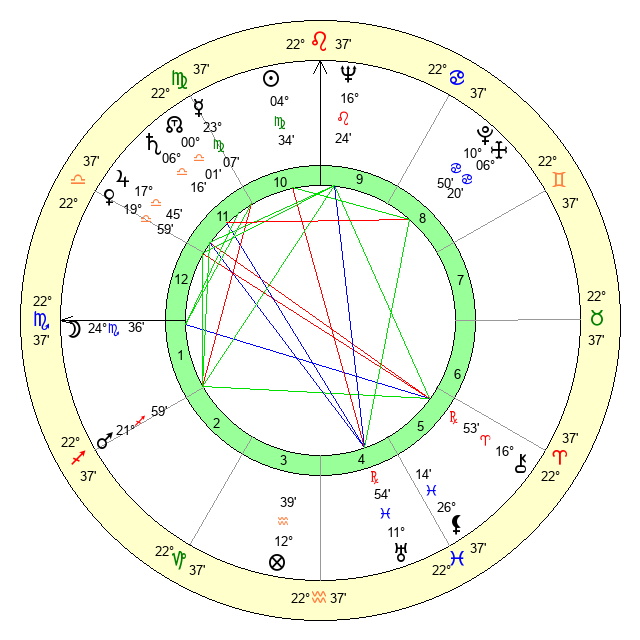 | Moon | 24 Scorpio 40 | 7 Scorpio 46 | 21 Leo 11 |
