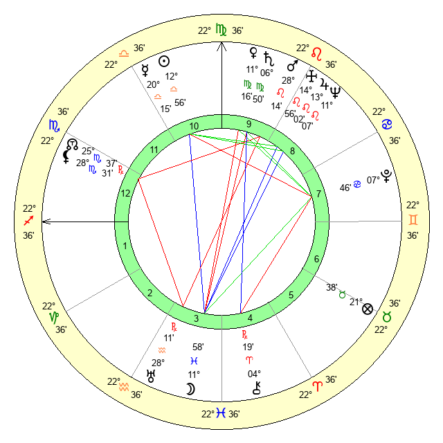 Saturn | 7 Virgo 29 | 27 Pisces 11 | 11 Virgo 41 |