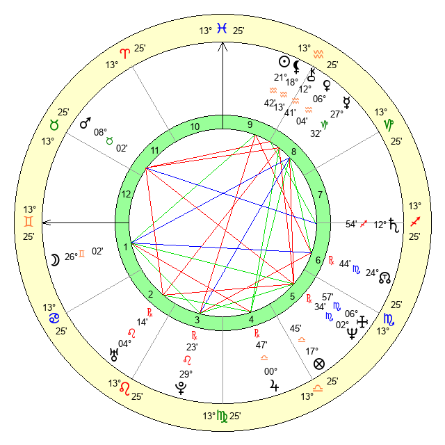| Moon | 26 Gemini 12 | 29 Cancer 57 | 4 Capricorn 4 |